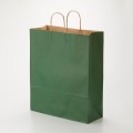 クラフト紙に緑ベタを印刷した手提げ紙袋です。色落ちを緩和させるために、上からニスを塗布しています。