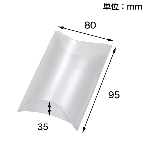 AXシリーズのクリスタルボックスは、可愛らしい枕(ピロー)型の組み立てタイプ。中身を見せるラッピングにピッタリの、透明ギフトボックスです。