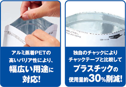 セイニチ独自のチャックにより、プラスチック使用量を30%削減し(チャックテープ比)、紙マーク表示を実現しました。(紙の重量比が50%を超える場合は紙マークを表示できます)
